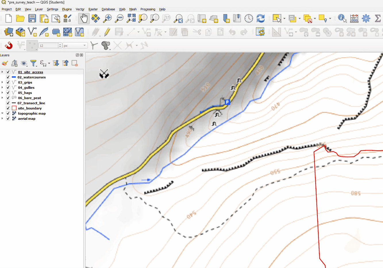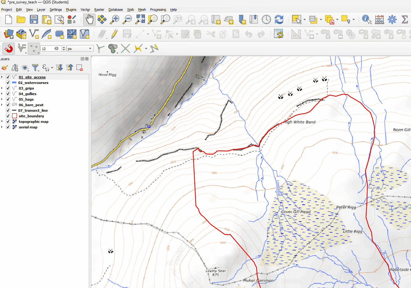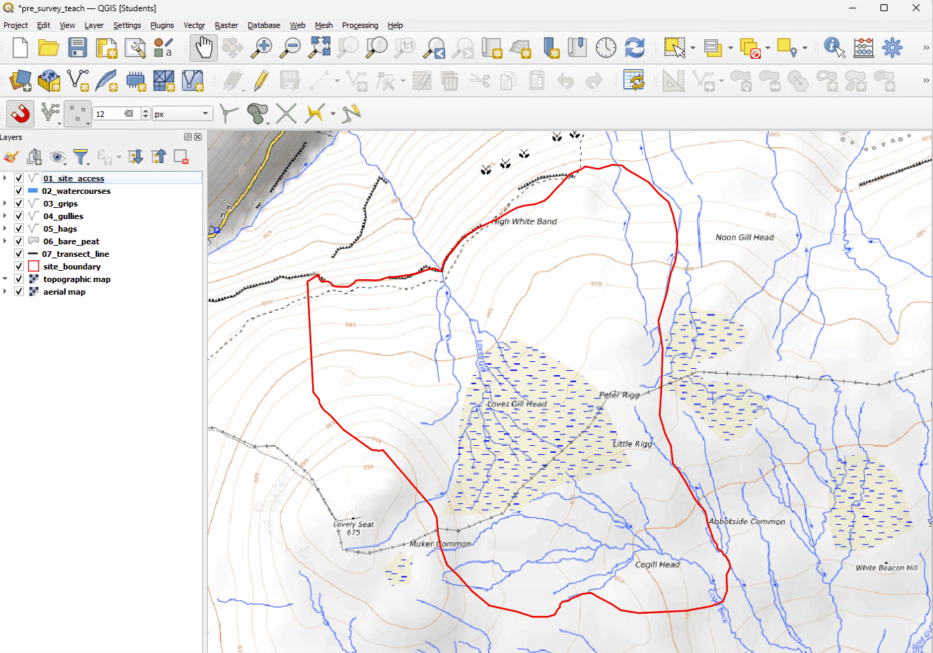 Go back to the Processing Toolbox and search for ‘Clip’. Open this tool and select ‘Grid’ as the input layer and ‘site_boundary’ as the output, this will cut out a layer of points that fall only inside the site_boundary.