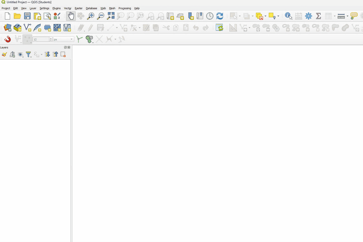 When you sit down at your PC in the QGIS sections of the course, the latest version of QGIS will already be installed, configured and ready to go. All you need to do is open the Start menu and search for QGIS, click the icon and the program will load up.