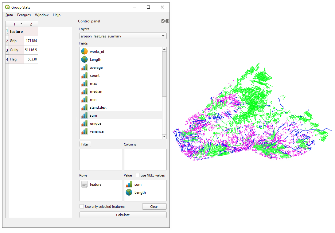 In this animated example we show the creation of a sum of all Grip lengths, a sum of Bare Peat area and then a sum of Bare Peat separated by category.