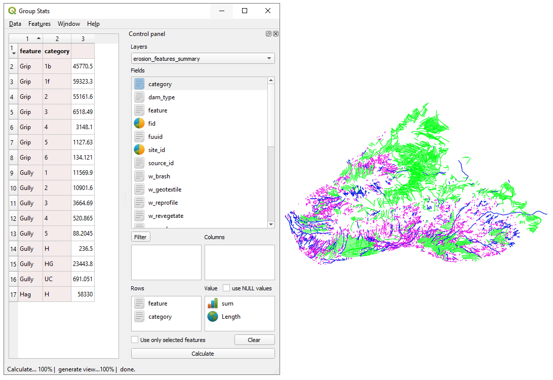In this example, the value to be aggregated is from the erosion_features_summary layer (which takes values of all grips, gullies and hags).